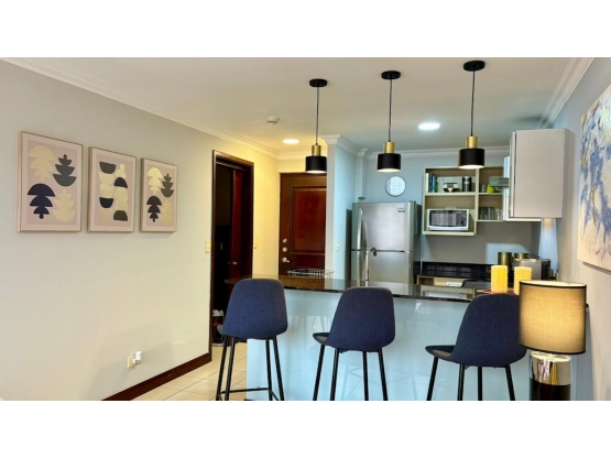 Apartamento amueblado en primer nivel, ubicado en el Condominio Avalon, Santa Ana. El apartamento está totalmente amueblado y equipado, y cuenta con: