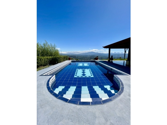 La casa ofrece 3 habitaciones, 2.5 baños, sala, comedor, sala de televisión, cocina con muebles en finas maderas y sobres de granito, cuarto de lavado, dos amplias terrazas con vistas imponentes, piscina, zonas verdes y cochera para dos vehículos bajo techo. La construcción en concreto y los techos altos artesanados aportan amplitud, luz natural y excelente ventilación, creando un ambiente cálido y acogedor.