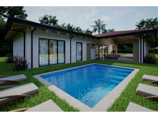 Three bedrooms, 2 Bathrooms, Living , mater with walking clothes, BBQ area, 2 car port, pantry and terrace.